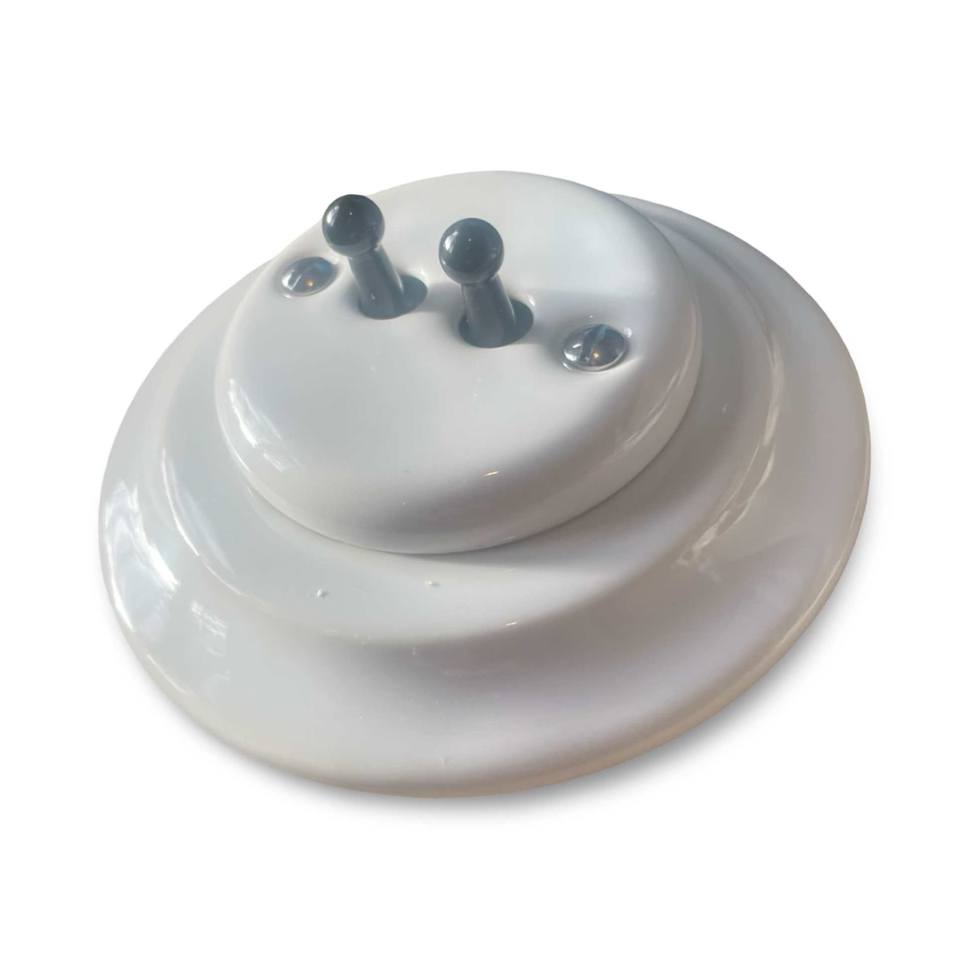 2 Gang 2 Way Porcelain Dolly Light Switch Black Toggles